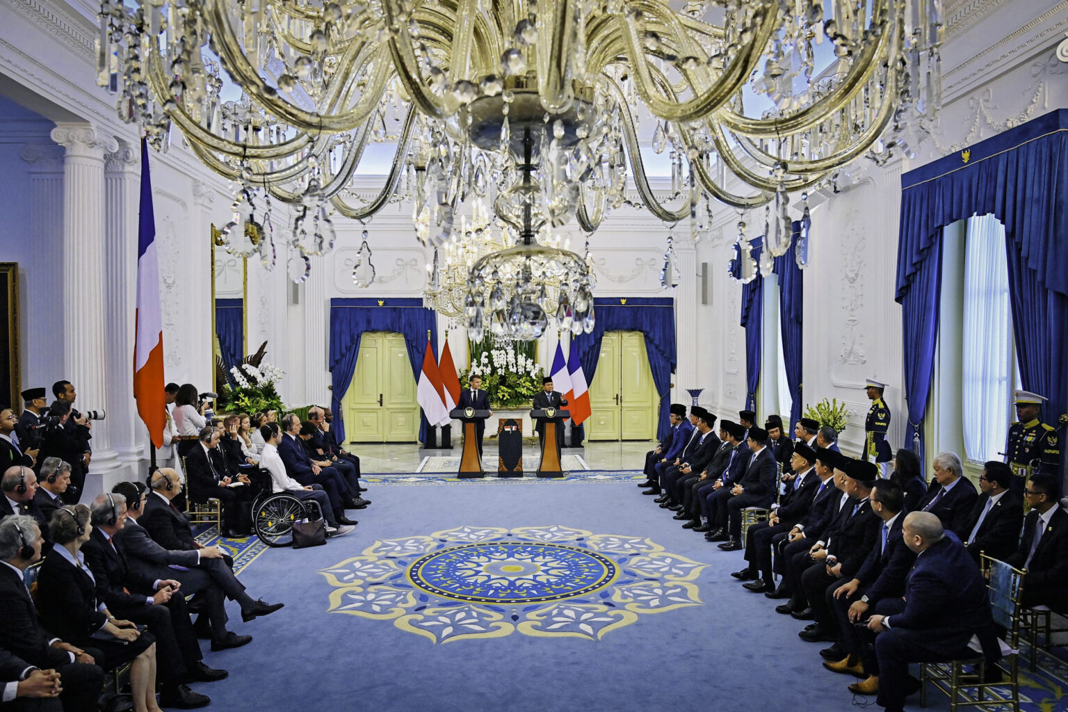 “Presiden Macron adalah kepala negara pertama dari Uni Eropa yang berkunjung secara resmi ke Indonesia sejak saya menjabat sebagai Presiden Republik Indonesia. Ini membuktikan kedekatan dan persahabatan kita yang kuat antara dua negara kita,” ujar Presiden Prabowo dalam keterangan pers bersama usai pertemuan bilateral.