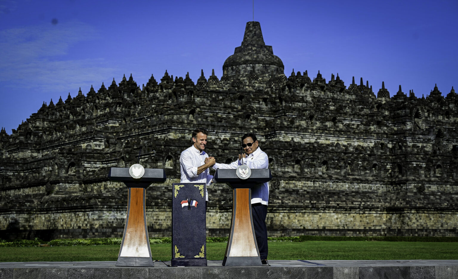 Mengakhiri sambutannya, Presiden Macron menekankan prinsip kemitraan yang saling menghormati dan menguntungkan. Presiden Macron juga menyampaikan rasa hormat dapat meluncurkan kemitraan ini di Candi Borobudur.
