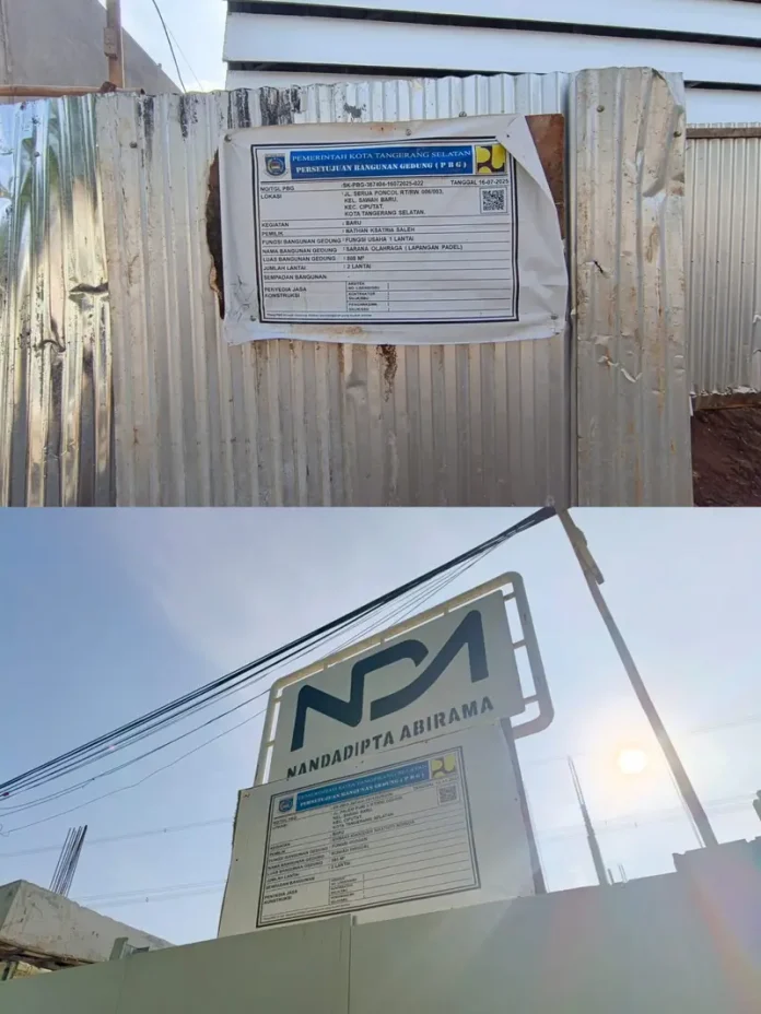 Tangerang Selatan, (beritairn.com) – Warga di sekitar Jalan Palem Puri, Ciputat, Tangerang Selatan, tengah dibuat heran sekaligus geram. Sebuah proyek pembangunan lapangan padel megah berlantai dua seluas 808 meter persegi berdiri kokoh dengan progres fisik mencapai 75%. Kejanggalan bukan pada kemegahannya, melainkan pada papan informasi Persetujuan Bangunan Gedung (PBG) yang terpasang di lokasi.