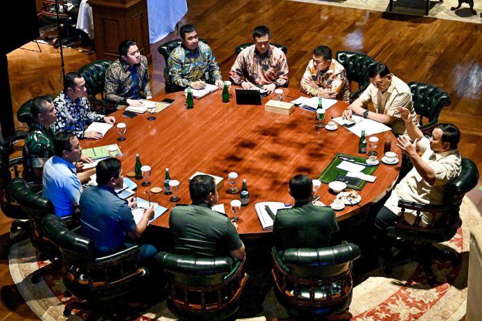 Bogor, (beritairn.com) – Presiden Prabowo Subianto memanggil sejumlah pimpinan tinggi TNI dan beberapa menteri Kabinet Merah Putih di kediaman pribadinya, Hambalang, Kabupaten Bogor, Jawa Barat. Pertemuan yang berlangsung di sebuah meja bundar tersebut membahas perkembangan situasi terkini Tanah Air di tengah dinamika geopolitik dan geoekonomi global.