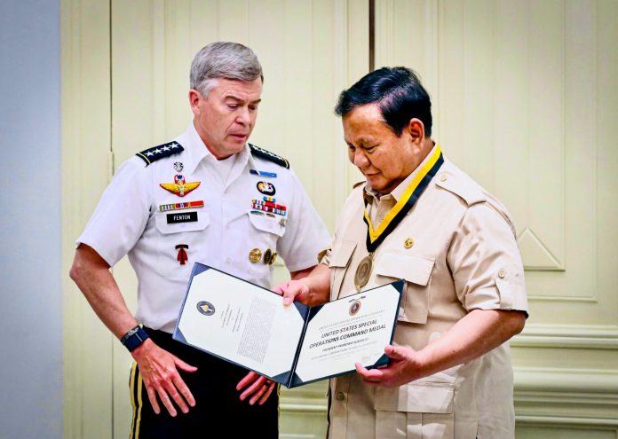 Pada kesempatan tersebut, Jenderal Fenton menyerahkan medali kehormatan U.S. Special Operations Command (USSOCOM) kepada Presiden Prabowo. Penghargaan tersebut mencatat bahwa advokasi Presiden Prabowo untuk peningkatan langkah-langkah keamanan telah memberikan kontribusi yang signifikan terhadap perjuangan global melawan ancaman-ancaman yang muncul, sekaligus mendorong stabilitas dan perdamaian di kawasan.(red)