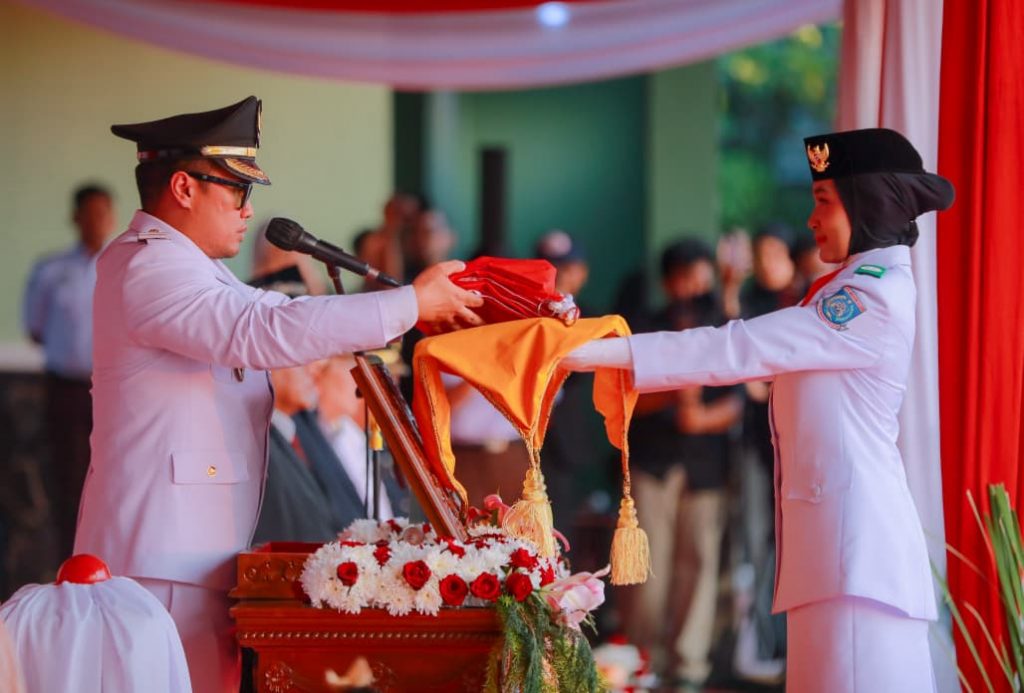Usai bendera pusaka merah putih diturunkan, petugas paskibraka menyerahkannya kepada Pilar Saga Ichsan sebagai simbol penghormatan dan rasa syukur atas kemerdekaan yang diraih bangsa Indonesia.(red)