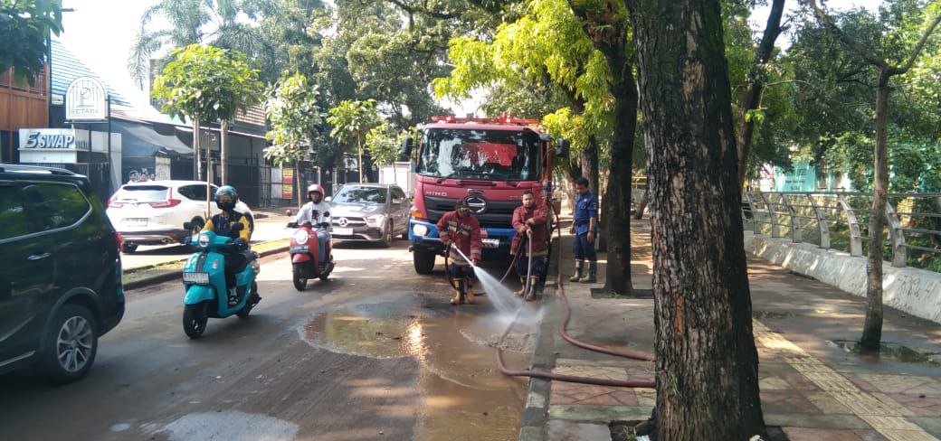 Usai surut, Pemkot Tangsel menerjunkan Dinas Pemadam Kebakaran dan Penyelamatan (Damkar) untuk melakukan penyemprotan lumpur di sejumlah wilayah.